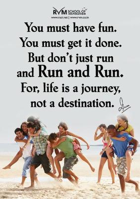 You must have fun. You must get it done. But don’t just run and run and run. For, life is a journey, not a destination.