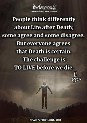 People think differently about Life after Death; some agree and some disagree. But everyone agrees that Death is certain. The challenge is TO LIVE before we die.