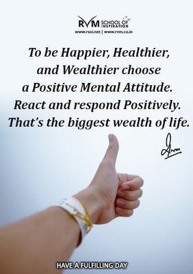 To be Happier, Healthier, and Wealthier choose a Positive Mental Attitude. React and respond Positively. That’s the biggest wealth of life.