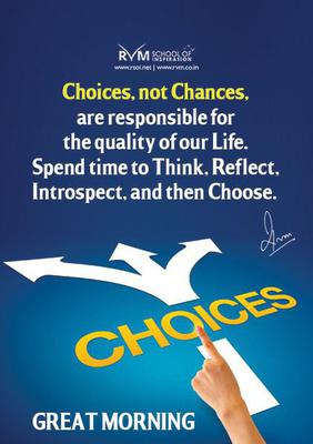 Choices, not Chances, are responsible for the quality of our Life. Spend time to Think, Reflect, Introspect, and then Choose.