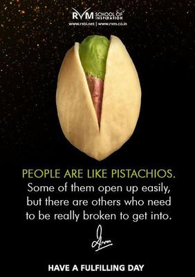 People are like pistachios. Some of them open up easily, but there are others who need to be really broken to get into.