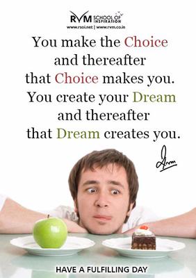 You make the Choice and thereafter that Choice makes you. You create your Dream and thereafter that Dream creates you.