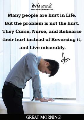 Many people are hurt in Life. But the problem is not the hurt. They Curse, Nurse, and Rehearse their hurt instead of Reversing it, and Live miserably.