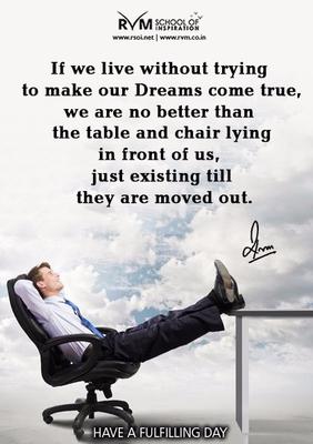 If we live without trying to make our Dreams come true, we are no better than the table and chair lying in front of us, just existing till they are moved out.