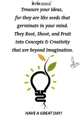 Treasure your Ideas, for they are like seeds that germinate in your mind. They Root, Shoot, and Fruit into Concepts & Creativity that are beyond Imagination.