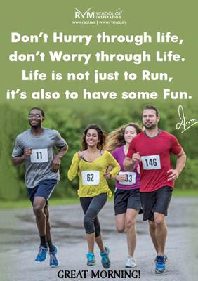 Don’t Hurry through life, don’t Worry through Life. Life is not just to Run, it’s also to have some Fun.