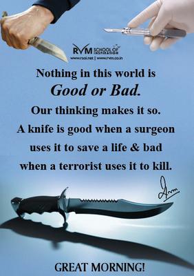 Nothing in this world is Good or Bad. Our thinking makes it so. A knife is good when a surgeon uses it to save a life & bad when a terrorist uses it to kill.