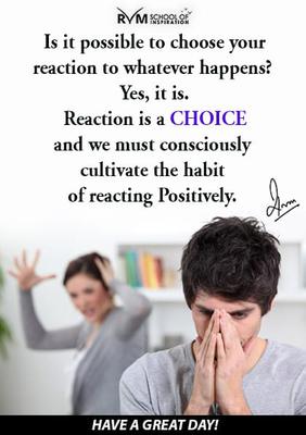 Is it possible to choose your reaction to whatever happens? Yes, it is. Reaction is a CHOICE and we must consciously cultivate the habit of reacting Positively.