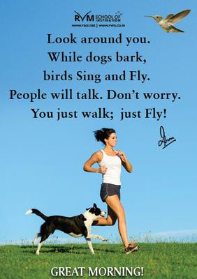 Look around you. While dogs bark, birds Sing and Fly. People will talk. Don’t worry. You just walk; just Fly!