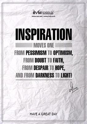 Inspiration moves one from Pessimism to Optimism, from Doubt to Faith, from Despair to Hope, and from Darkness to Light!- RVM