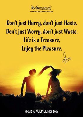 Don't just Hurry, don't just Haste. Don't just Worry, don't just Waste. Life is a Treasure, Enjoy the Pleasure.- RVM