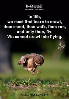 In life, we must first learn to crawl, then stand, then walk, then run, and only then, fly. We cannot crawl into flying.
