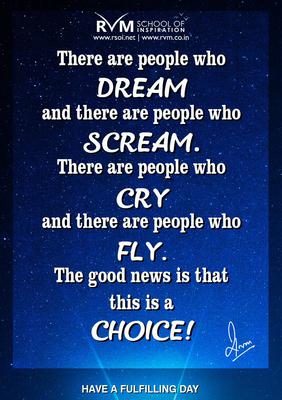 There are people who Dream and there are people who Scream. There are people who Cry and there are people who Fly. The good news is that this is a CHOICE!-RVM
