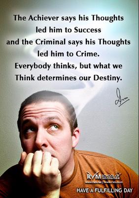 The Achiever says his Thoughts led him to Success and the Criminal says his Thoughts led him to Crime. Everybody thinks, but what we Think determines our Destiny.