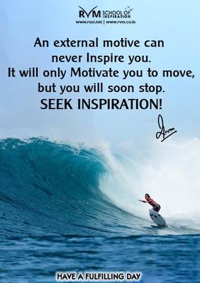 An external motive can never Inspire you. It will only Motivate you to move, but you will soon stop. Seek Inspiration!